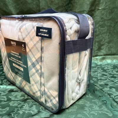 Therapeutic Fleece Sheet Set, Double, Light Green/Blue Colour, with medium striped print. 4 Pieces