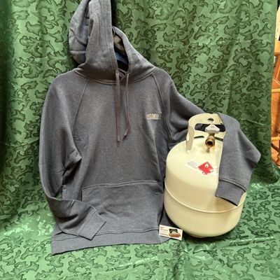 Hudson’s, Hoodie & Propane, OK,... So what does any adult really want for Christmas? How about something practical? Who wouldn't be pleased with a Hudson branded hoodie, size large, and a 20LB propane tank! The tank is currently empty, so it can safely be placed indoors under the Christmas tree, but comes with a card for a free fill up at Hudson’s in Walkerton. Keep warm, my friends!