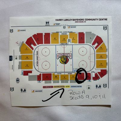 Watch in person the Owen Sound Attack take on the Flint Firebirds Sunday November 23, at 2 PM, in The Hairy Lumley Bayshore C.C. Section T, Row A, Seats 9 to 11.