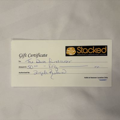 Stacked $50 Gift Certificate, valid at Hanover location. Sure, there is no expiration date on the gift certificate, but no reasonable person will leave this one lay around the house for long!