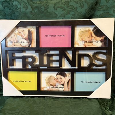 Beautiful wood frame to display your favorite friendship memory photos. Holds six photos.